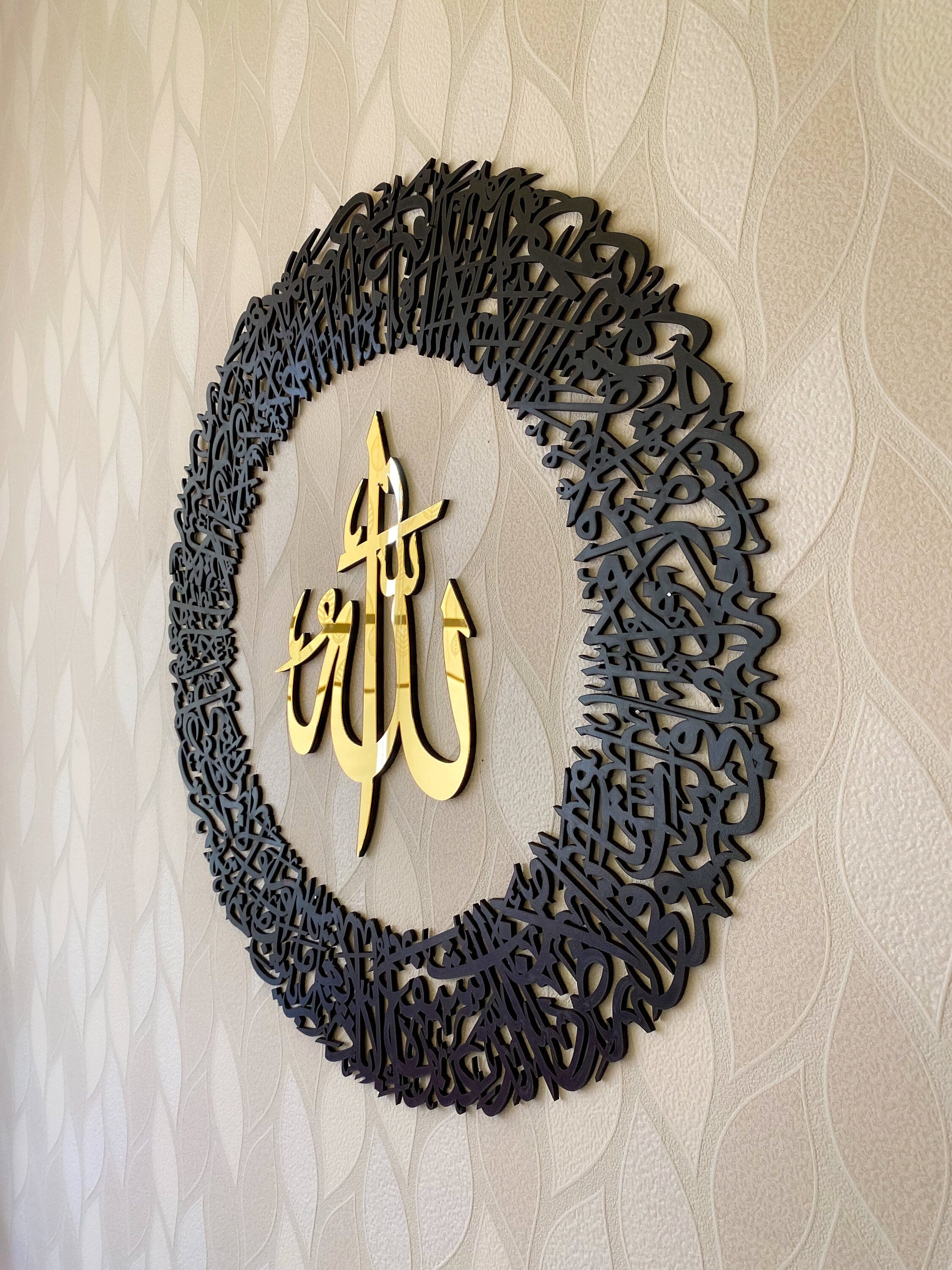 Introducing our elegant Islamic Decoration piece featuring Ayatul Kursi Arabic calligraphy, available in four sizes: