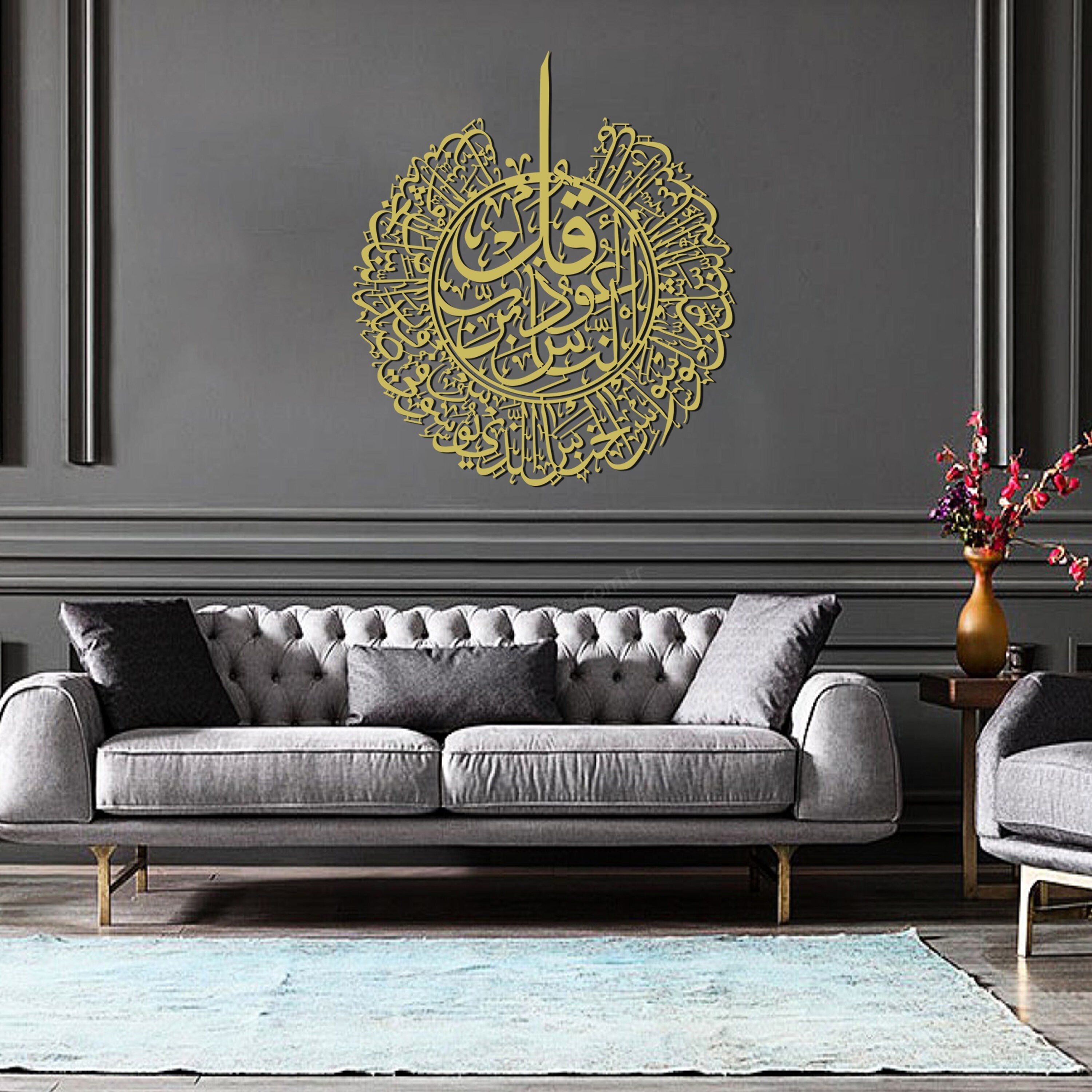 Surah An-Nas Metal Islamic Wall Art is a visually stunning piece crafted on high-quality acrylic canvas. Featuring the elegant Arabic calligraphy of Surah An-Nas from the Quran, this modern and sleek wall art adds sophistication to your space while serving as a source of spiritual inspiration. The transparent acrylic accentuates the intricate details, making it a timeless and meaningful addition to your home or a thoughtful gift for a loved one.
